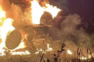 Caminhão tomba e pega fogo na PR-466 entre Marumbi e Kaloré