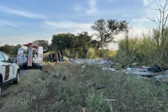 Carreta carregada com móveis tomba em curva da PR-444 em Arapongas