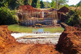 Ponte sobre o Ribeirão Pirapó, na Estrada da Ponte Seca, passa por concretagem de blocos