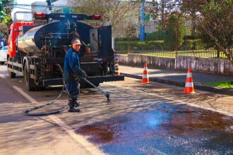 Codar promove manutenção no asfalto da Rua Flamingos em Arapongas