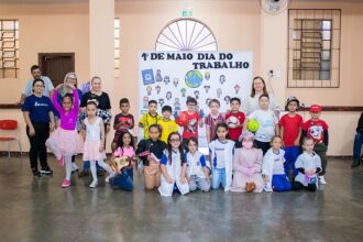 Alunos da Escola Municipal Califórnia realizam apresentação em homenagem ao Dia do Trabalho
