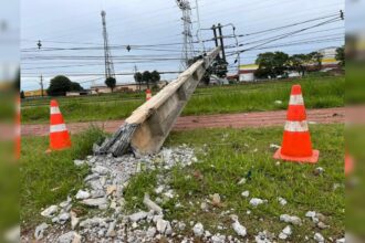 Carro derruba poste e compromete energia na zona norte de Apucarana