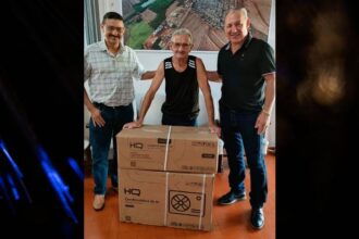 O prefeito Rildo da Padaria e o vice Elço da Líder realizaram a entrega do ar-condicionado ao sorteado do prêmio IPTU
