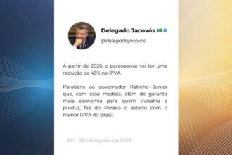 Delegado Jacovós – Paraná terá o menor Imposto sobre a Propriedade de Veículos Automotores (IPVA) de todo o Brasil