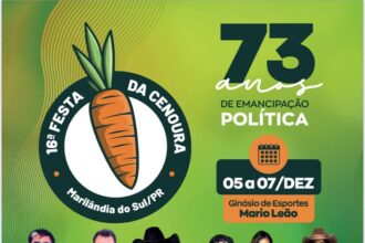 Prefeitura anuncia shows e atrações da 16ª Festa da Cenoura em Marilândia do Sul
