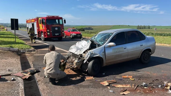 Segundo informações do Corpo de Bombeiros, a colisão aconteceu próximo ao Posto Gisele e envolveu um Corsa Classic e um veículo de carga, por volta das 12 horas.