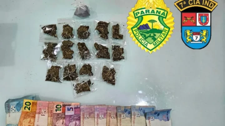 Foram apreendidos 16 porções de maconha e R$ 176 em espécie. O menor foi apreendido e encaminhado à delegacia.