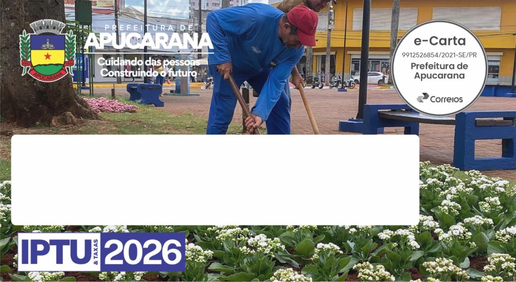A guia digital do Documento de Arrecadação Municipal (DAM) está disponível no site da Prefeitura de Apucarana, na área de Serviços, por meio do banner do IPTU. Embora o vencimento seja em 10 de março e as E-Cartas de Cobrança sejam enviadas pelos Correios ao endereço cadastrado, muitos contribuintes optam por antecipar o pagamento. “Essa prática ajuda na organização financeira e permite aproveitar o desconto de 5% para pagamento à vista. Por isso, quem desejar já pode acessar, baixar e imprimir a guia diretamente pela internet, sem a necessidade de aguardar a chegada do documento físico”, orienta o secretário municipal da Fazenda, professor Rogério Ribeiro.