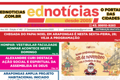 Desde 2005, o Ednotícias atua em Arapongas e região levando informação com credibilidade, agilidade e compromisso com a verdade. Somos um portal regional independente, dedicado a registrar os fatos que impactam nossa comunidade.