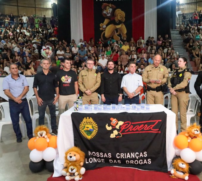 Arapongas promoveu, na noite de quinta-feira, 27, a formatura do Proerd 2025 com 1.400 alunos dos 5º anos da Rede Municipal de Ensino. A cerimônia ocorreu no Ginásio de Esportes Luiz A. Zin e reuniu autoridades, estudantes e famílias.
