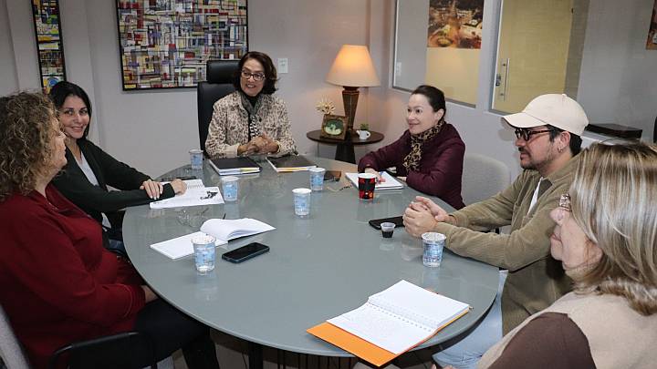 A Prefeitura de Arapongas promoveu uma reunião de alinhamento de ações entre as Secretarias Municipais da Cultura, Lazer e Eventos (Secle) e de Desenvolvimento, Inovação, Trabalho e Renda (Semude) nesta quinta-feira, 24. Estiveram presentes a vice-prefeita, Édina Kümmel, a secretária da Semude, Cláudia Lens, e a gerente de Projetos da pasta, Adriâna Gomes, o secretário da Secle, Pedro Ziroldo, e a diretora de Cultura e turismóloga Juscileia Amaral.