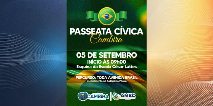 A Prefeitura de Cambira, em parceria com a AMEC, promove na próxima sexta-feira, 05 de setembro, a Passeata Cívica, um momento de união, respeito e valorização da cidadania.