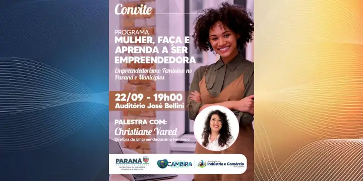 O evento contará com a palestra de Christiane Yared, Diretora de Empreendedorismo Feminino, que compartilhará experiências e orientações voltadas ao incentivo e à valorização da mulher empreendedora.
