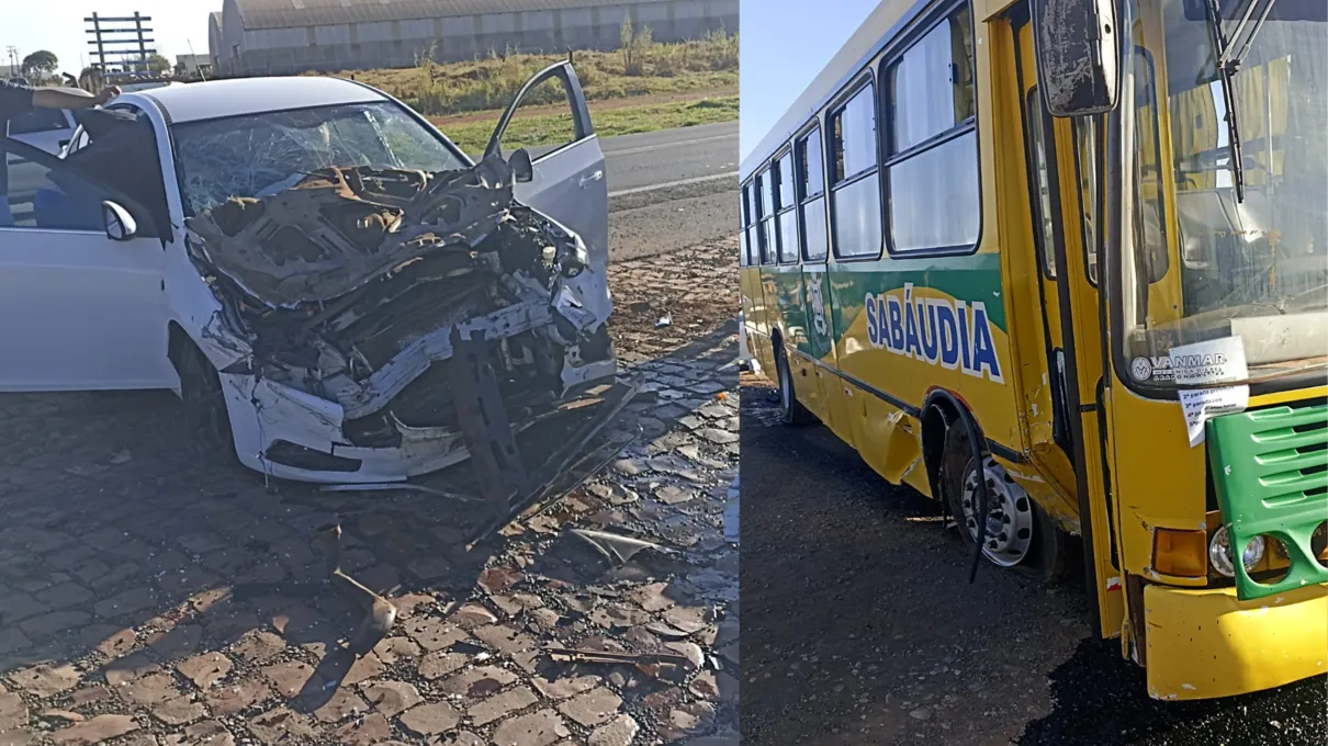 Um acidente envolvendo um Chevrolet Cruze e um ônibus que transporta trabalhadores foi registrado na tarde desta quinta-feira (18), em Arapongas.