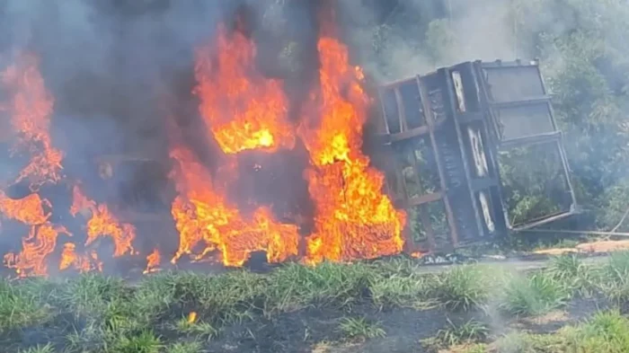 O Corpo de Bombeiros foi acionado para conter o incêndio e prestar socorro. Uma vítima foi resgatada e encaminhada para atendimento médico. A Polícia Rodoviária Federal (PRF) está no local.