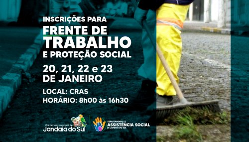 O CRAS de Jandaia do Sul abriu inscrições para a Frente de Trabalho e Proteção Social, iniciativa da Prefeitura por meio do Departamento de Assistência Social voltada à geração de oportunidades, fortalecimento da inclusão social e apoio a famílias em situação de vulnerabilidade.