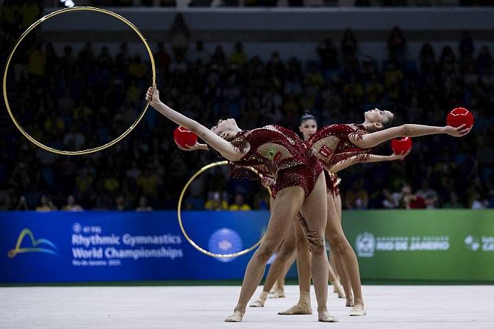 Neste domingo, o time brasileiro foi medalha de prata na competição com bolas e arcos. A apresentação somou 28.550 pontos, apenas atrás do time ucraniano, que fez 28.650 pontos. O pódio foi completado pela China, com 28.350 pontos.