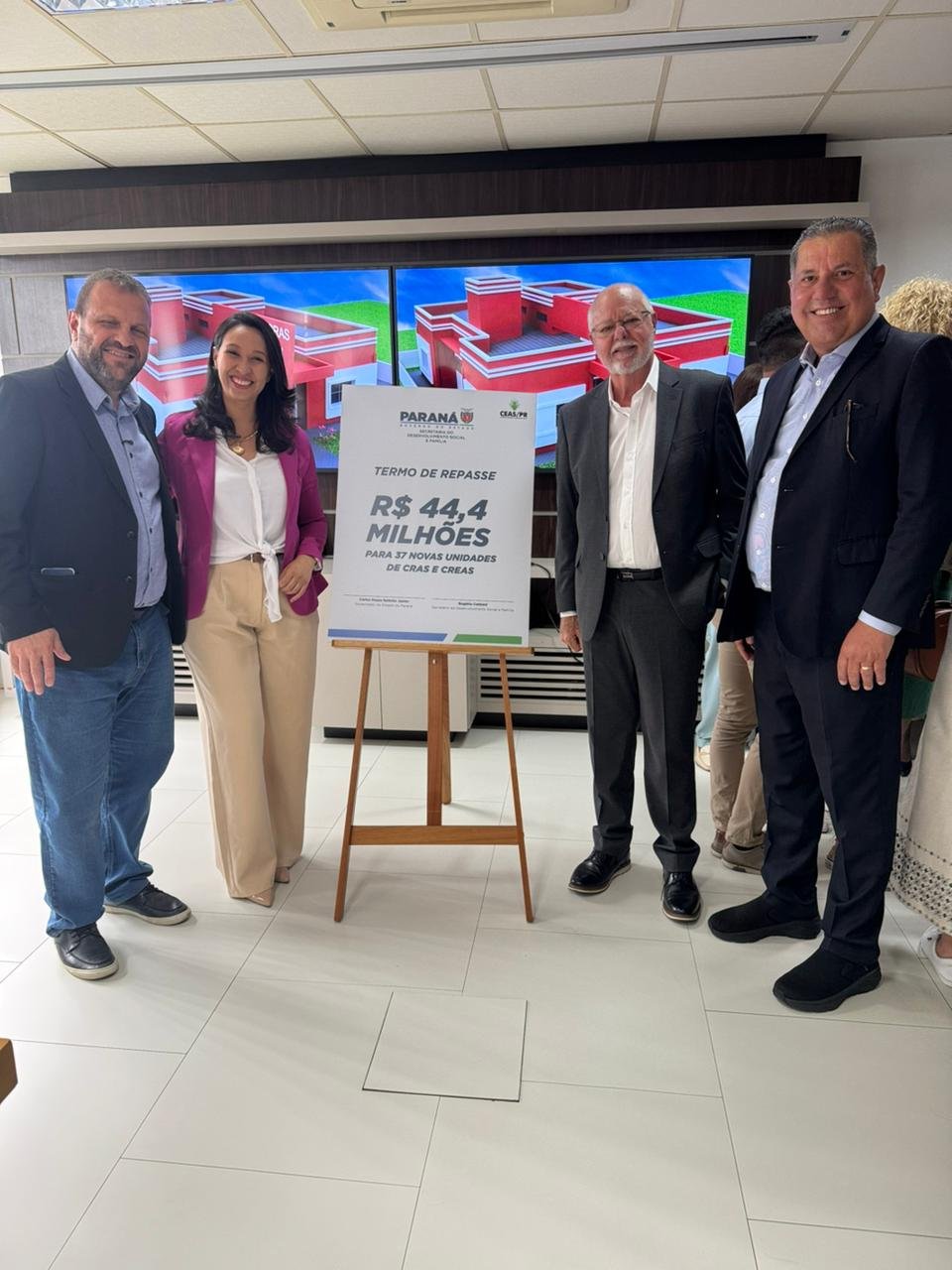 De acordo com a divulgação, a nova unidade será a sede do CRAS Prof. Arnaldo Garcia, na Vila Oliveira, que hoje funciona em imóvel alugado. O convênio foi assinado pelo secretário estadual do Desenvolvimento Social e Família, Rogério Carboni, e a conquista contou com a indicação do deputado estadual Cobra Repórter. Maistro e a secretária agradeceram as autoridades presentes e destacaram a parceria com o governador Ratinho Júnior.