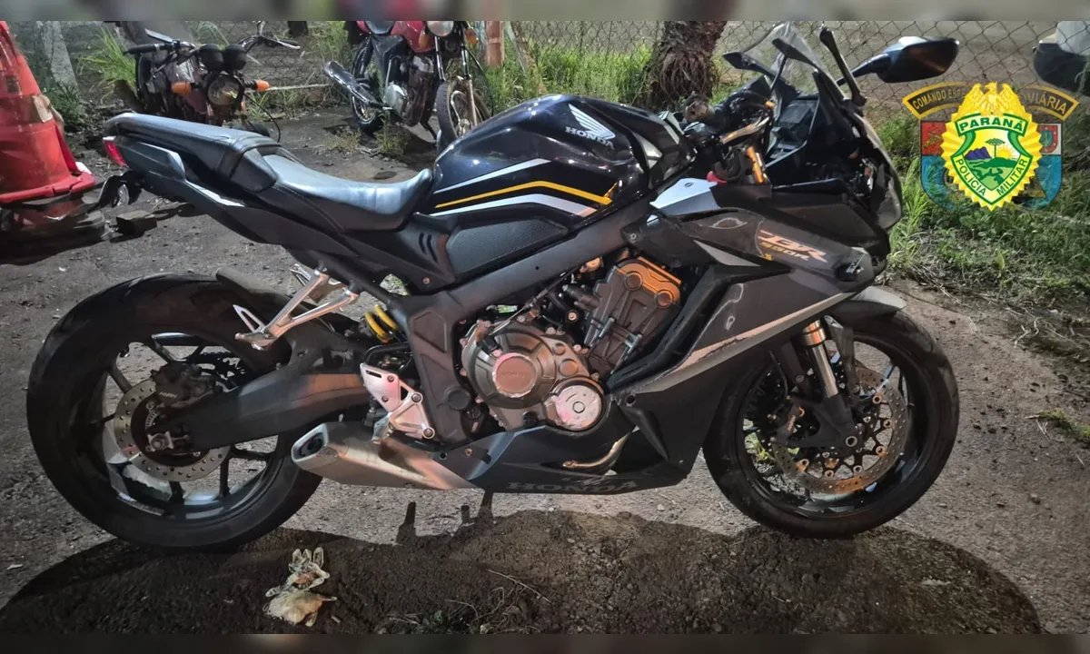 A moto envolvida, uma Honda CBR 650R com placa de Arapongas, foi encontrada no local sem a presença de responsável. O veículo não tinha pendências e foi recolhido ao pátio do Posto Rodoviário de Rolândia.