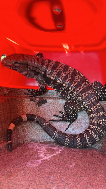 Após a captura, o lagarto foi encaminhado e solto em área rural, com vegetação nativa e distante do meio urbano, em conformidade com os protocolos ambientais vigentes.