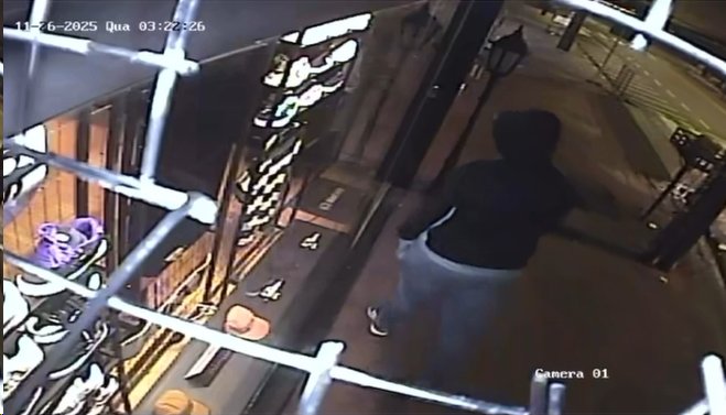 O estabelecimento é do ramo de vestuário e fica em área central, onde o arrombamento e a invasão causaram danos na porta e no vidro do acesso principal. Outros detalhes sobre a dinâmica e a identificação dos envolvidos não foram informados no momento.