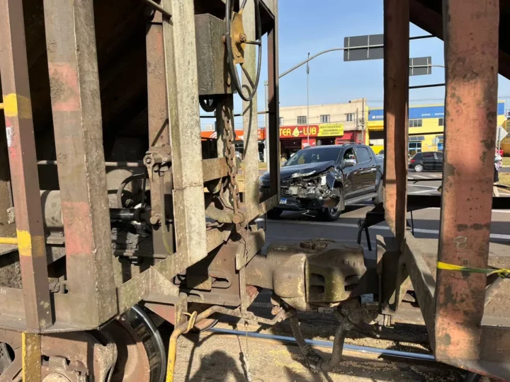 Uma mulher de 58 anos que conduzia uma S10 preta colidiu contra um trem na manhã deste sábado (02) em Arapongas. A ocorrência aconteceu na Rua Rouxinol com a Avenida Arapongas.