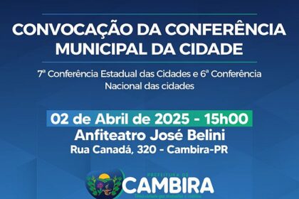 A Prefeitura Municipal de Cambira convocou a Conferência Extraordinária Municipal da Cidade,…