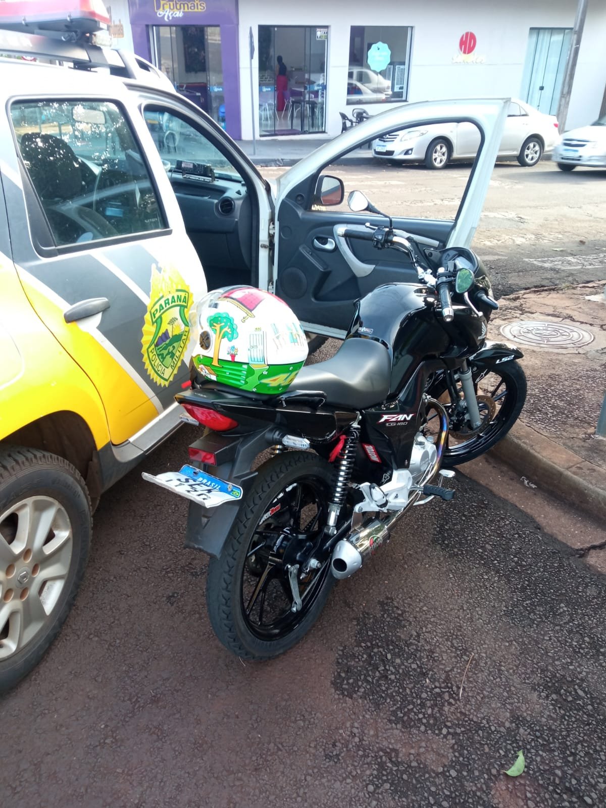 Polícia apreende moto com placa dobrada e escapamento adulterado no centro de São Pedro do Ivaí