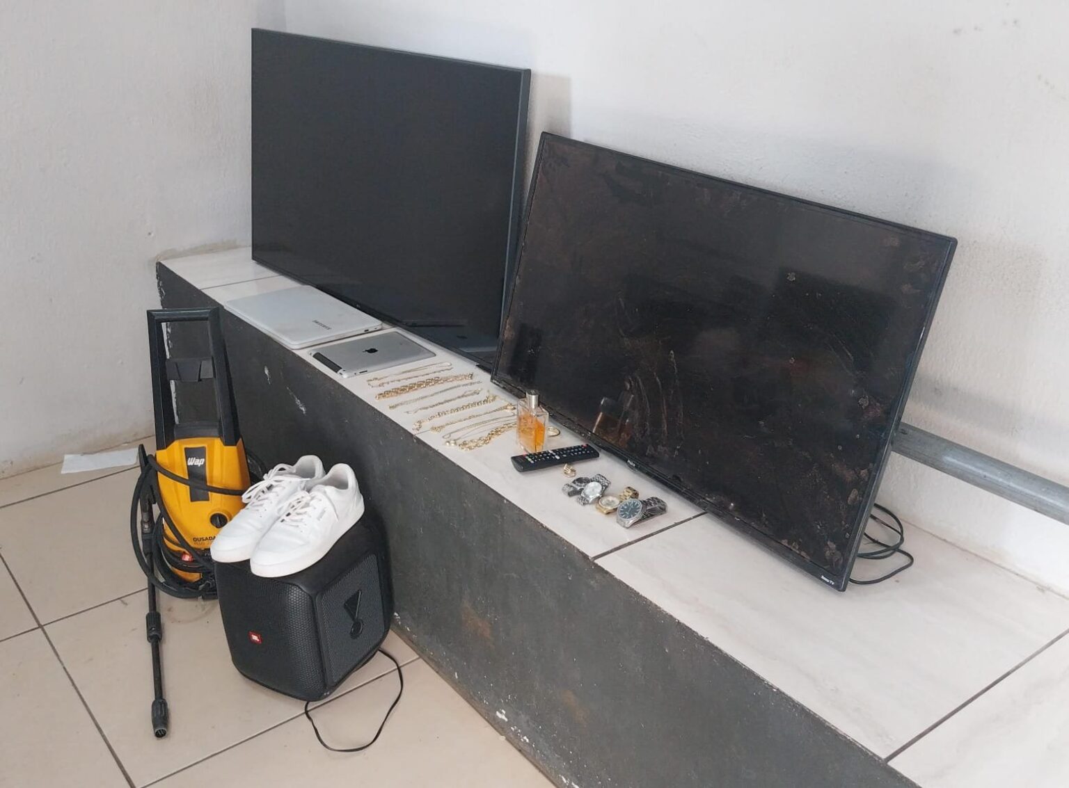 Dentro da casa, ele percebeu a falta de diversos objetos: uma TV LG, uma TV Philco, um iPad, um notebook Samsung, um tênis Puma, um perfume Hugo Boss, uma lavadora de alta pressão WAP, uma caixa de som JBL, além de relógios e semijoias. O iPad estava logado na conta iCloud da esposa, com localização ativa apontando para uma residência próxima.