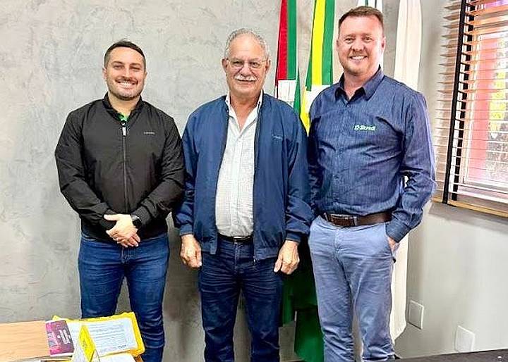 O prefeito Benedito José Pupio (Ditão Pupio) recebeu nesta sexta-feira, 1º de agosto, a visita do presidente da Sicredi Valor Sustentável PR/SP, Rudenei Fischer, acompanhado do gerente da agência local, Deivit Lange. O encontro, realizado na Prefeitura Municipal, reforçou a parceria entre a cooperativa e o poder público municipal, com foco em ações voltadas ao desenvolvimento sustentável de Jandaia do Sul.