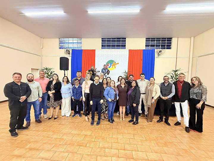 O evento reuniu não somente os estudantes, mas também profissionais da Educação, uma equipe de cozinheiras, representantes da Câmara de Vereadores, secretarias municipais, além do prefeito Rafael Cita, a vice, Édina Kümmel, e o secretário da Educação, Lino Batista de Oliveira.
