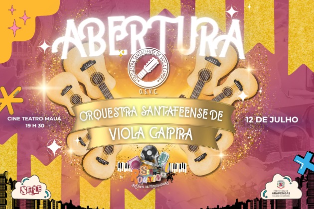 A Prefeitura Municipal de Arapongas, por meio da Secretaria Municipal de Cultura, Lazer e Eventos (Secle), convida a toda a população para a abertura do Festival de Música Rouxinol, evento que integra o Festival de Todas as Artes de Arapongas (Festar). A apresentação será neste sábado, 12, às 19h30, no Cine Teatro Mauá, com a Orquestra Santafeense de Viola Caipira.