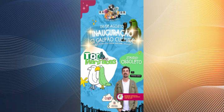 Arapongas inaugura, na próxima quarta-feira, 06, o G1 – Galpão Cultural Toca das Maritacas, que fica localizado na Estação Cultural Milene. Para celebrar, haverá o stand-up “Obsoleto” com o humorista Fernando Borghi, às 20h30, com humor inteligente, afiado e atual. As atividades integram o Festival de Música Rouxinol, no Festival de Todas as Artes de Arapongas (Festar), promovido pela Prefeitura Municipal, por meio da Secretaria Municipal da Cultura, Lazer e Eventos (Secle).