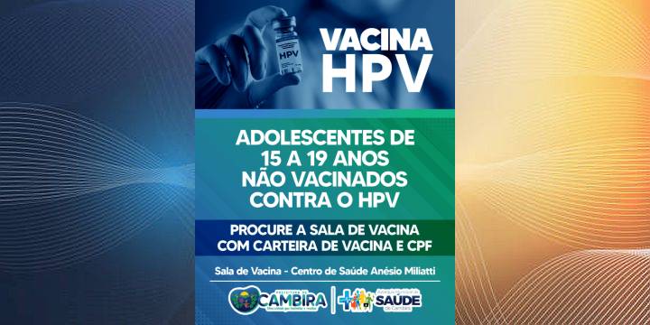 A Prefeitura de Cambira e Autarquia Municipal de Saúde estão intensificando a vacinação contra o HPV para adolescentes com idades entre 15 e 19 anos que ainda não foram imunizados. A ação tem como objetivo ampliar a cobertura vacinal e prevenir o surgimento de doenças relacionadas ao vírus, como câncer de colo do útero, garganta e pênis.