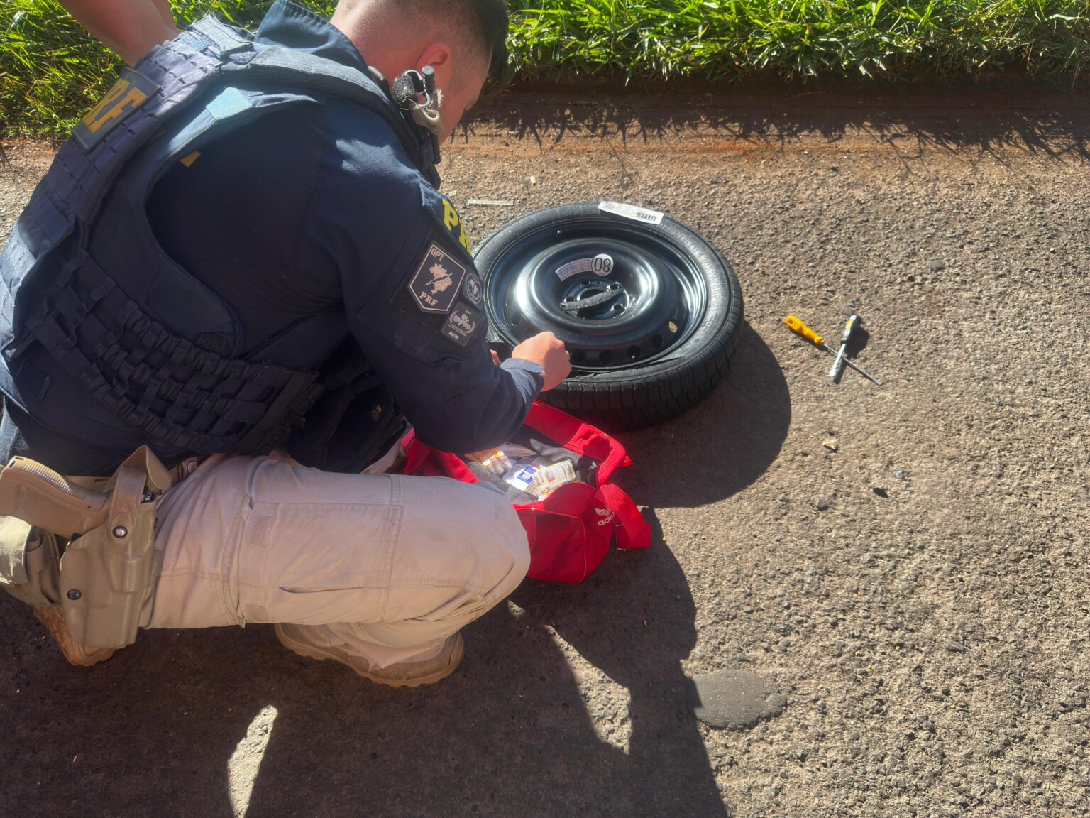 Segundo a PRF, o veículo era alugado e chamou a atenção durante a fiscalização porque o estepe apresentava peso incompatível. Na verificação minuciosa, os agentes localizaram 298 ampolas do produto Lipoless 15 mg, de fabricação paraguaia, ocultadas no interior do pneu. A motorista afirmou desconhecer o transporte irregular.