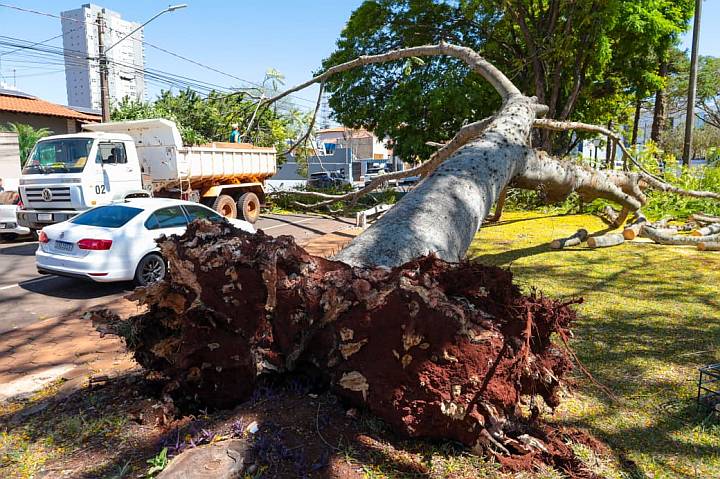 Robert Patrick Medeiros, fiscal ambiental do município, diz que se tratava de uma Guapuruvu, da família das Fabáceas. “Nós não temos incidência no município de queda dessa árvore, devido ao sistema dela, radicular, porque é agressivo e grande, justamente para sustentar esse peso. O local em que ela está plantada, uma área gramada, onde o sistema radicular consegue se desenvolver”, explica. “Então, a gente acredita que, devido às últimas chuvas, o excesso de água causou uma infiltração, em que ela não conseguiu absorver todo esse volume de água. E, devido aos ventos, pode ter levado a esse tombamento dela. Com certeza a raiz trabalhou, porque eu vejo que, na madeira, havia zero problema”, comentou o especialista. “As outras duas árvores (próximas à que caiu) vão passar por uma avaliação”, pontuou.