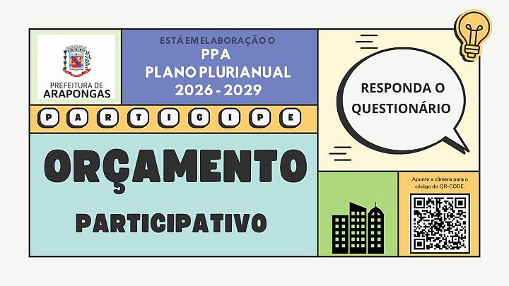 A Prefeitura de Arapongas contabiliza 343 respostas no questionário do Orçamento Participativo até esta segunda-feira, 07. Todos os cidadãos e cidadãs do município são convidados a colaborar acessando o Questionário Digital (disponível através do link Aqui ou QR Code) até o dia 27 de julho.