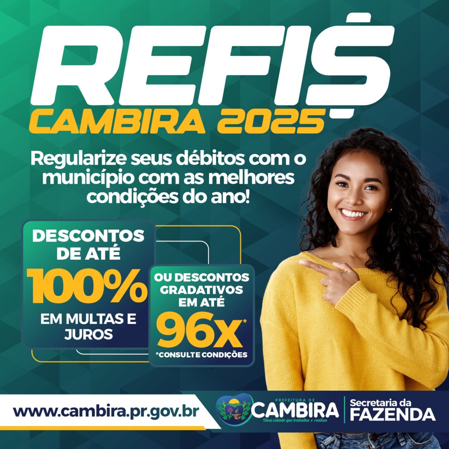 REFIS Cambira 2025 entra na reta final: contribuintes têm até 28 de novembro para regularizar débitos com as melhores condições do ano. A iniciativa da Prefeitura, por meio da Secretaria da Fazenda, busca incentivar a quitação de pendências e ampliar a receita para investimentos essenciais.