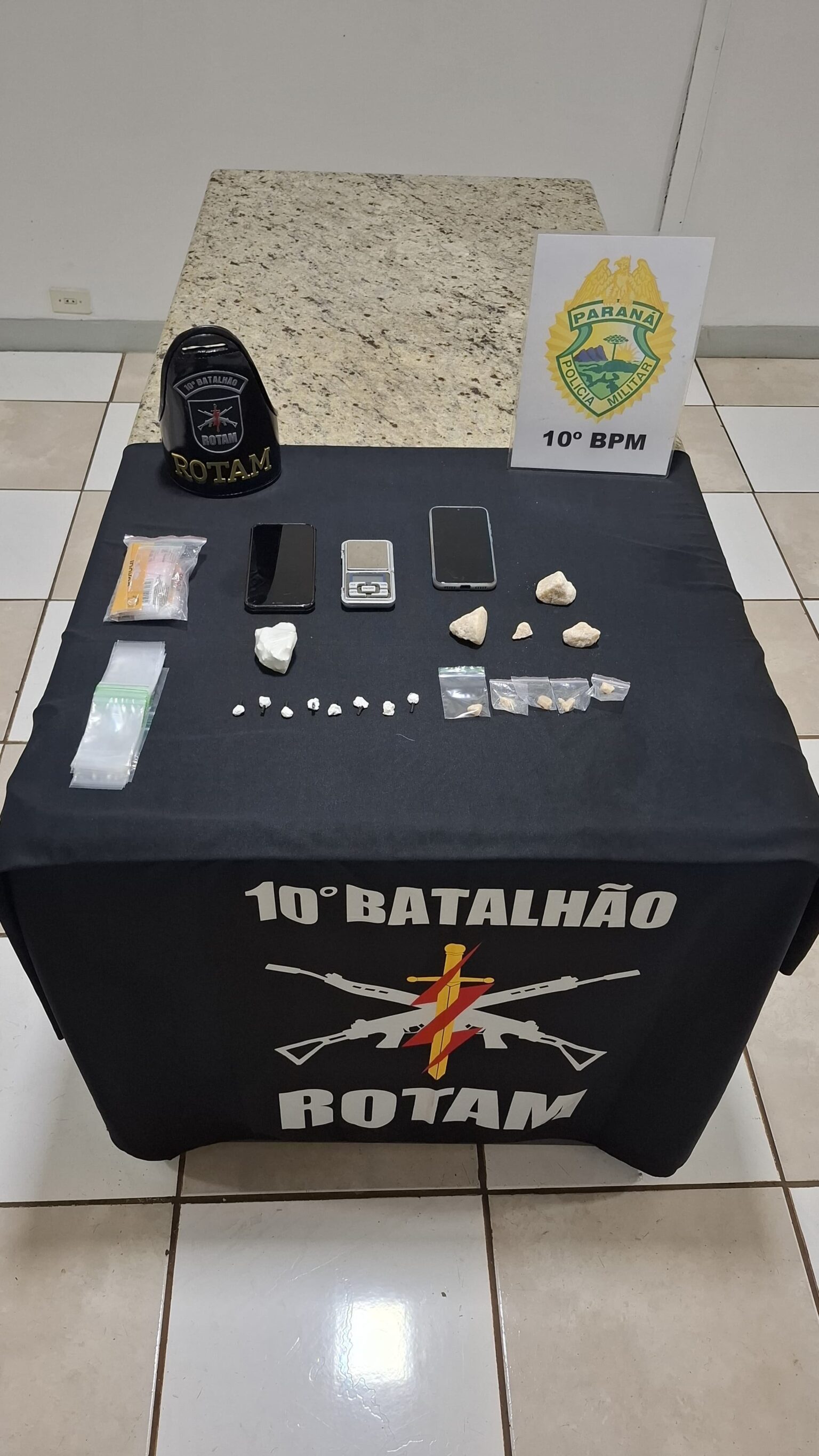 Na sequência, foi acionada a equipe de operações com cães do 10º BPM, sendo empregado o cão de faro Smoke, que realizou varredura no local sem localizar novos ilícitos. Diante dos fatos, foi dada voz de prisão ao homem, que assumiu a posse dos entorpecentes, sendo encaminhado à 17ª SDP de Apucarana para os procedimentos de praxe. As substâncias apreendidas foram apresentadas à autoridade policial para as medidas cabíveis.