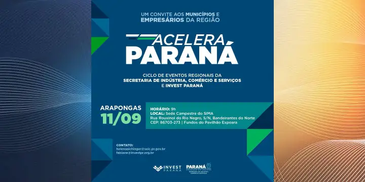 O objetivo do evento é promover a integração entre o poder público e o setor empresarial, fortalecendo o relacionamento institucional com as administrações municipais da região. Durante a programação, serão apresentadas a missão da SEIC e da Invest Paraná, além de projetos estratégicos voltados ao desenvolvimento econômico regional.