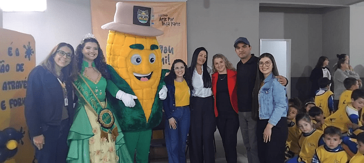 Também marcaram presença a Rainha da Festa do Milho, AngelisaPilati, a Fanfarra Municipal, que encantou o público, e o carismático Sr. Espiga, que garantiu a alegria da criançada! 🌽🥳