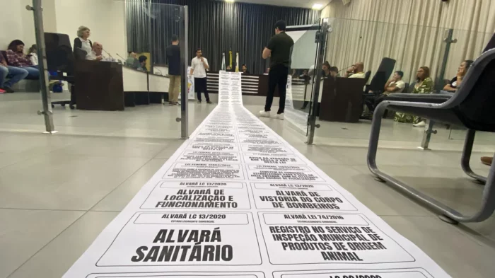 “São onze metros de papel na parede atrapalhando a vida de quem está gerando emprego e renda na cidade. Encontrei leis muito desfasadas e essa metrificação é um alerta. Toda vez que a gente pensar em fazer uma lei pedindo uma placa a gente deve refletir sobre isso”, comenta.